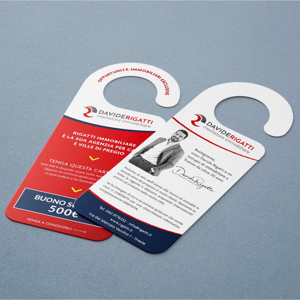 Brand identity per l’agenzia immobiliare Rigatti, tra le più esclusive di Trieste. L’immagine coordinata progettata comprende block notescartelle porta documenticard porta chiavi in pvc, biglietti da visita in multi-strato e una rivista trimestrale.