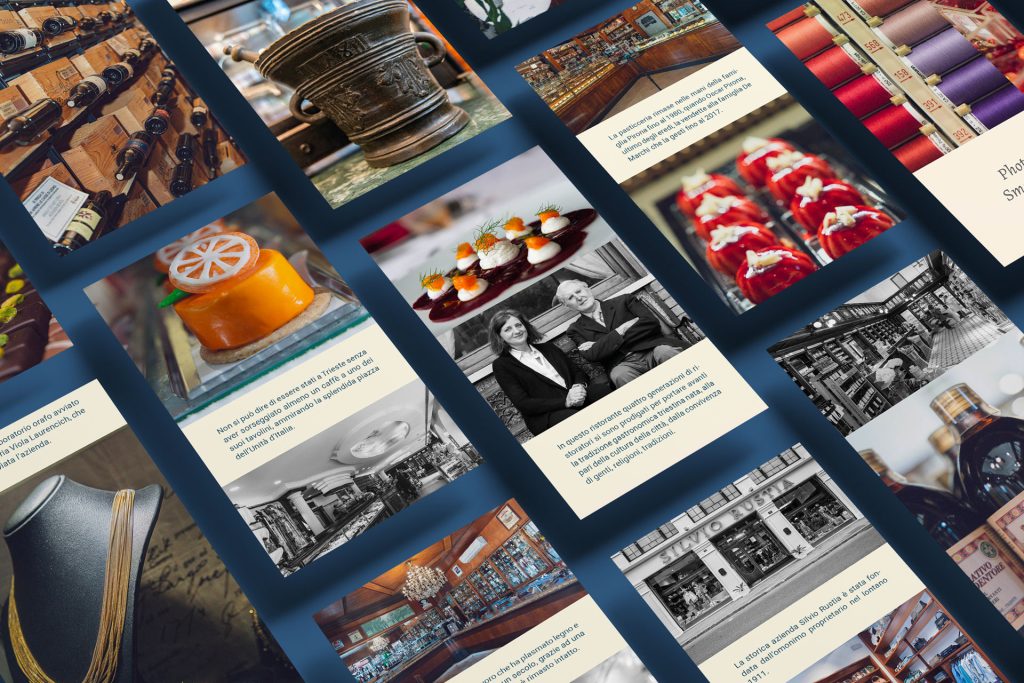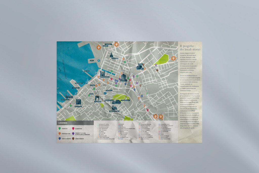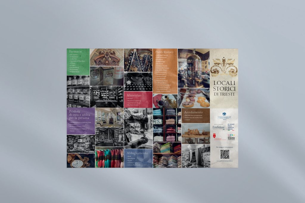 Ci sono state commissionate, da parte di Confcommercio, la progettazione grafica di una mappa cartacea e l’impaginazione di 50 schede digitali sui locali storici di Trieste.